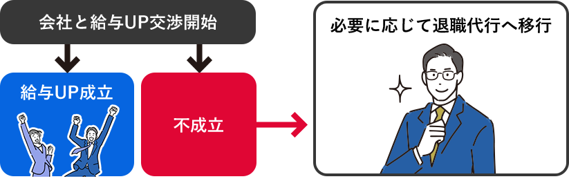 仮に交渉不成立の場合には追加料金なしで退職代行に移行可能です。